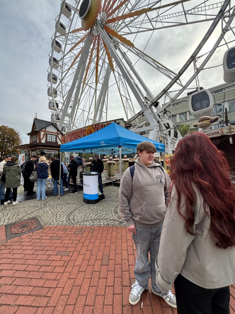 Am vergangenen Montag besuchten einige Schülerinnen und Schüler aus unserem 9. und 10. Jahrgang den Stunikenmarkt. Die Runde im Riesenrad diente aber nicht nur dem Vergnügen, sondern auch als Vorstellungsgespräch für ein Praktikum bzw. eine Ausbildungsstelle.
