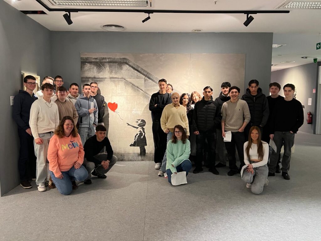 Gut vorbereitet von ihren Klassenlehrern, die passende Arbeitsaufträge erstellt hatten, erkundeten die Schülerinnen und Schüler die Ausstellung aufmerksam und mit großem Interesse. Dabei setzten sie sich nicht nur mit den Kunstwerken auseinander, sondern auch mit den gesellschaftskritischen Botschaften dahinter. Ob Konsumkritik, Krieg, Überwachung oder soziale Ungleichheit – Banksys Werke regen zum Nachdenken an und sprechen Themen an, die aktueller kaum sein könnten.