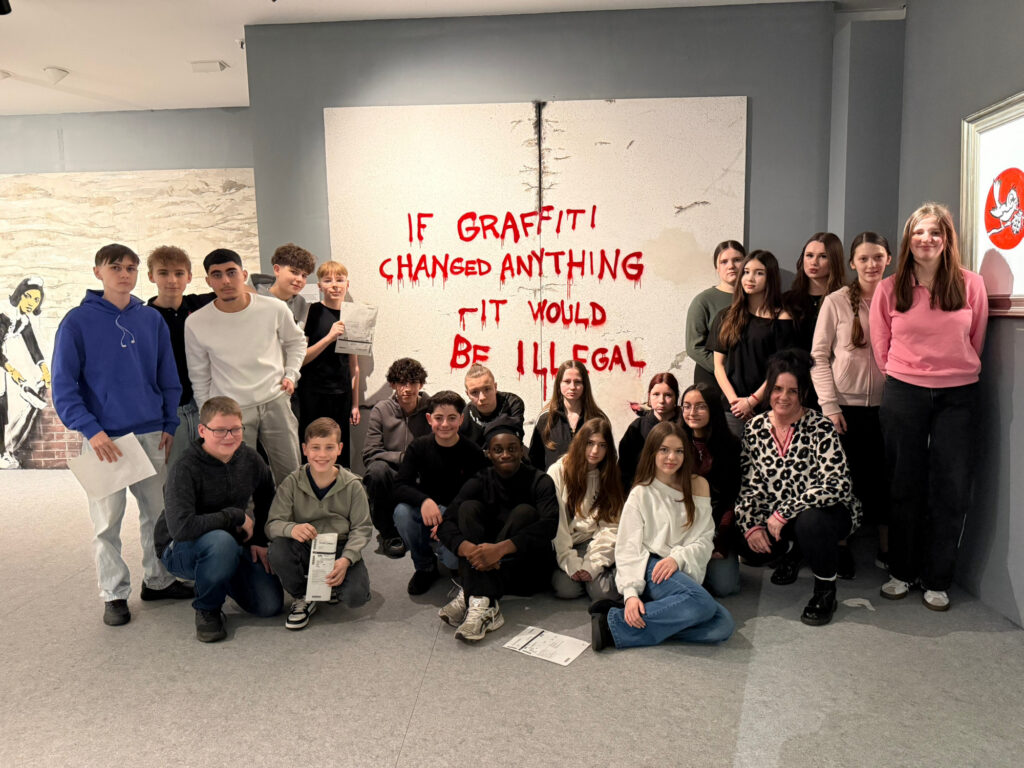 Im Rahmen des Kunstunterrichts unternahmen die Klassen 8b, 8c und 10c einen spannenden Ausflug zur Banksy-Ausstellung in Dortmund. Schon im Vorfeld war die Neugier groß – und vor Ort wurde schnell klar: Diese Exkursion würde niemand so schnell vergessen.