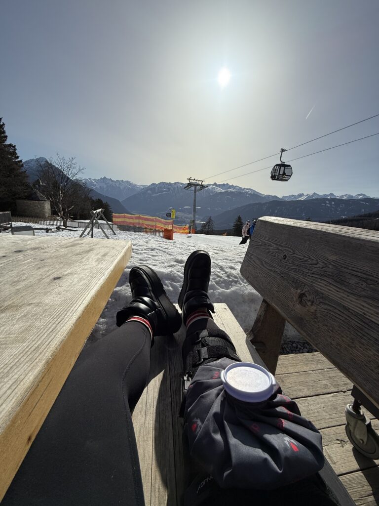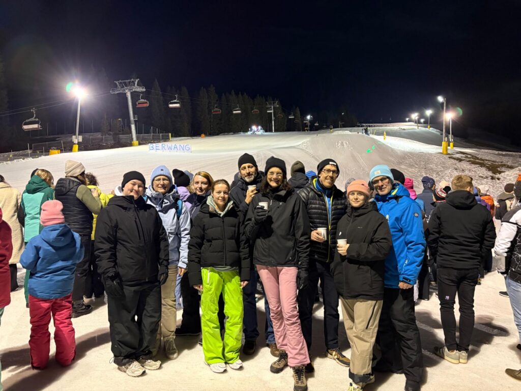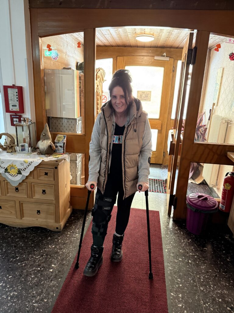 Leider begann die Fahrt mit einem Schreckmoment: Gleich am ersten Tag zog sich Frau Altenschmidt bei einem Skiunfall einen Kreuzbandriss zu und musste noch vor Ort operiert werden. Umso größer war ihr Durchhaltevermögen – bereits nach zwei Tagen war sie wieder bei der Gruppe und ließ es sich nicht nehmen, sogar auf Krücken mit auf den Berg zur Hütte zu kommen.